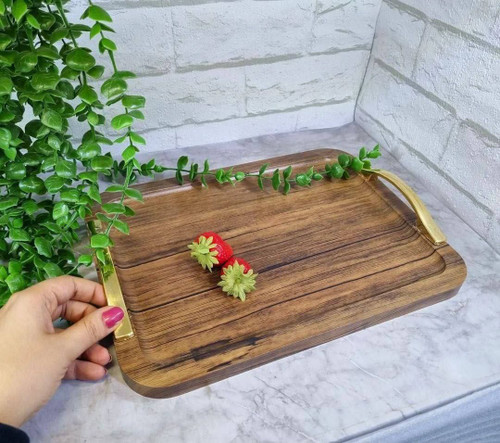 سینی وکیوم مستطیل چوبی دسته طلایی