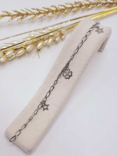 دستبند زنجیری طرح گل قلبی و ستاره استیل