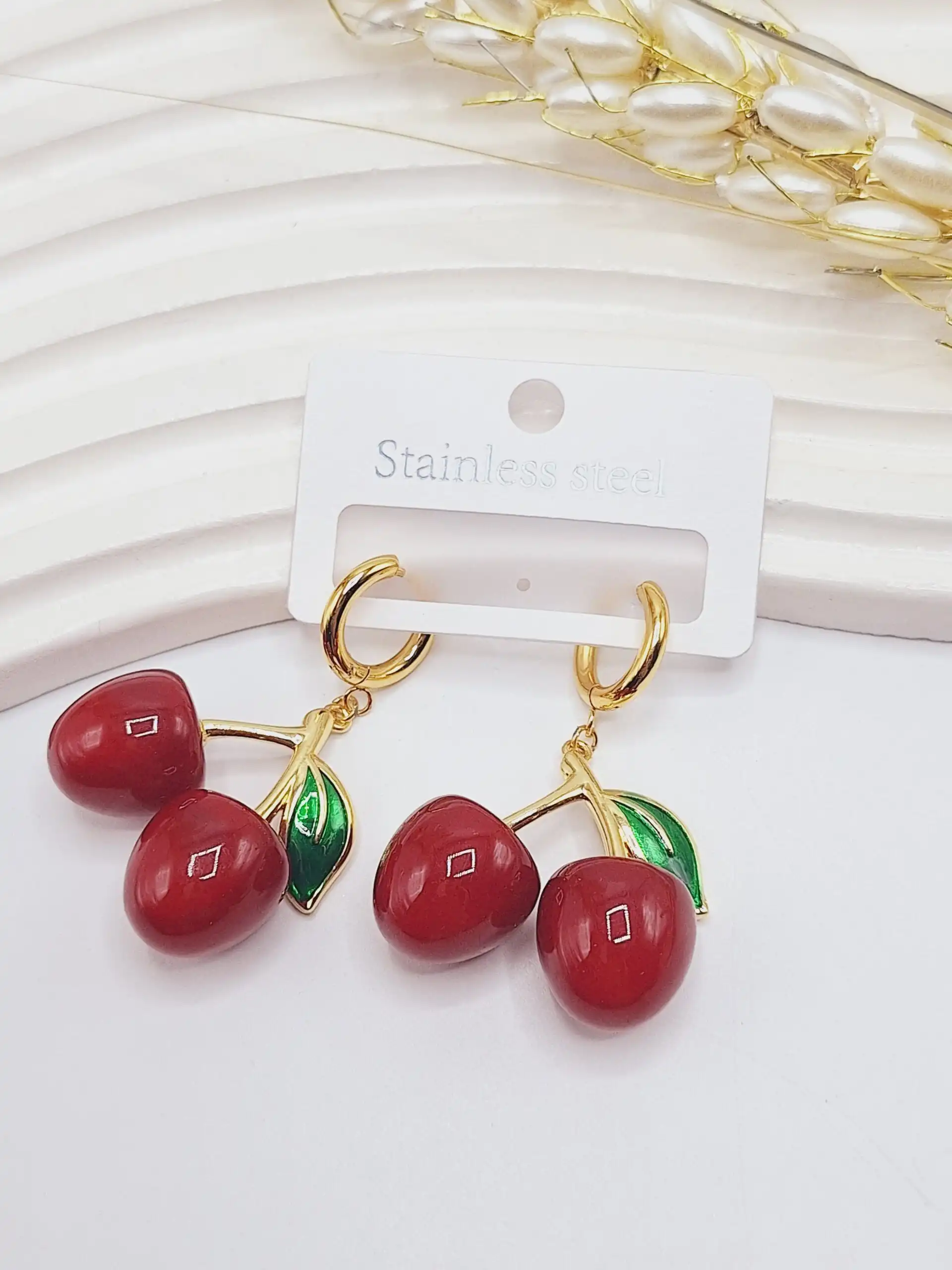 ناموجودگوشواره گیلاسی مدل قفلی طرح برگ سبز