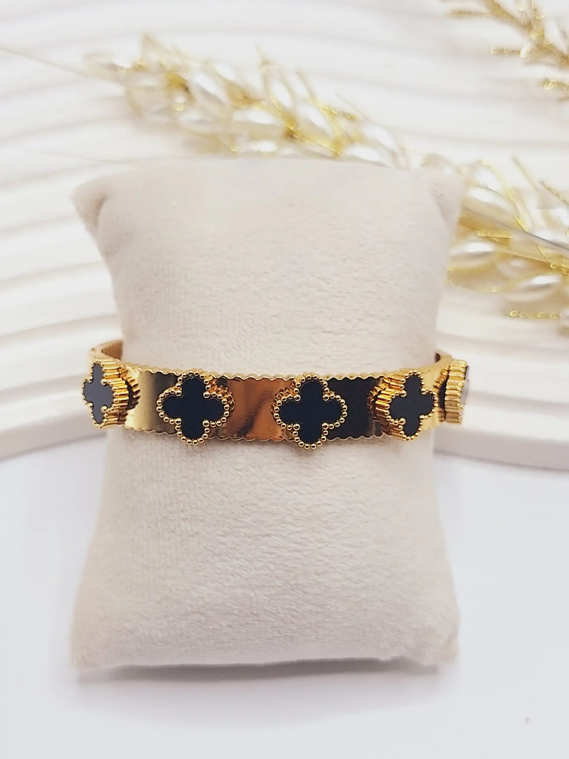 دستبند طلایی طرح تک ونکلیف مشکی نگین دار