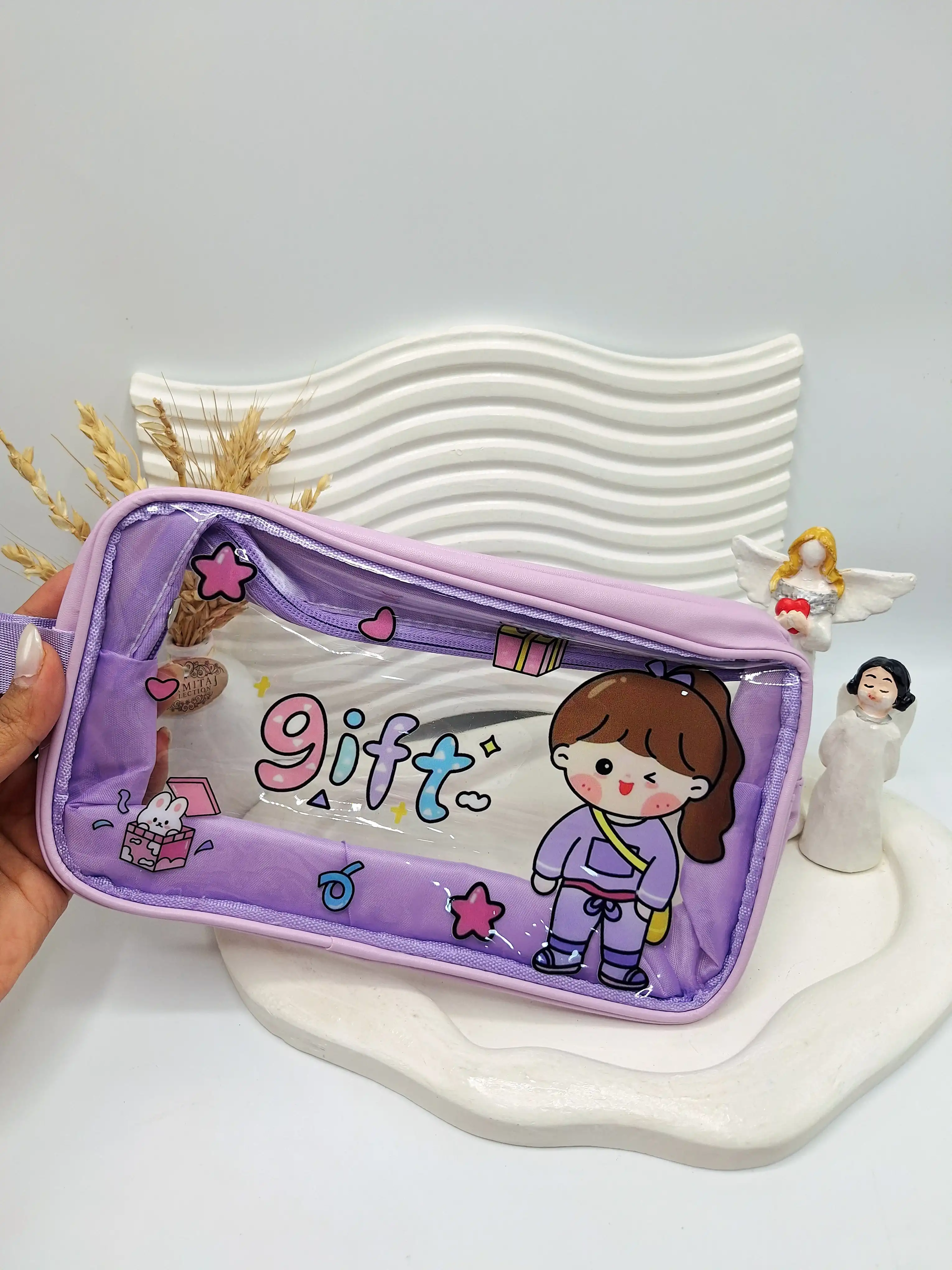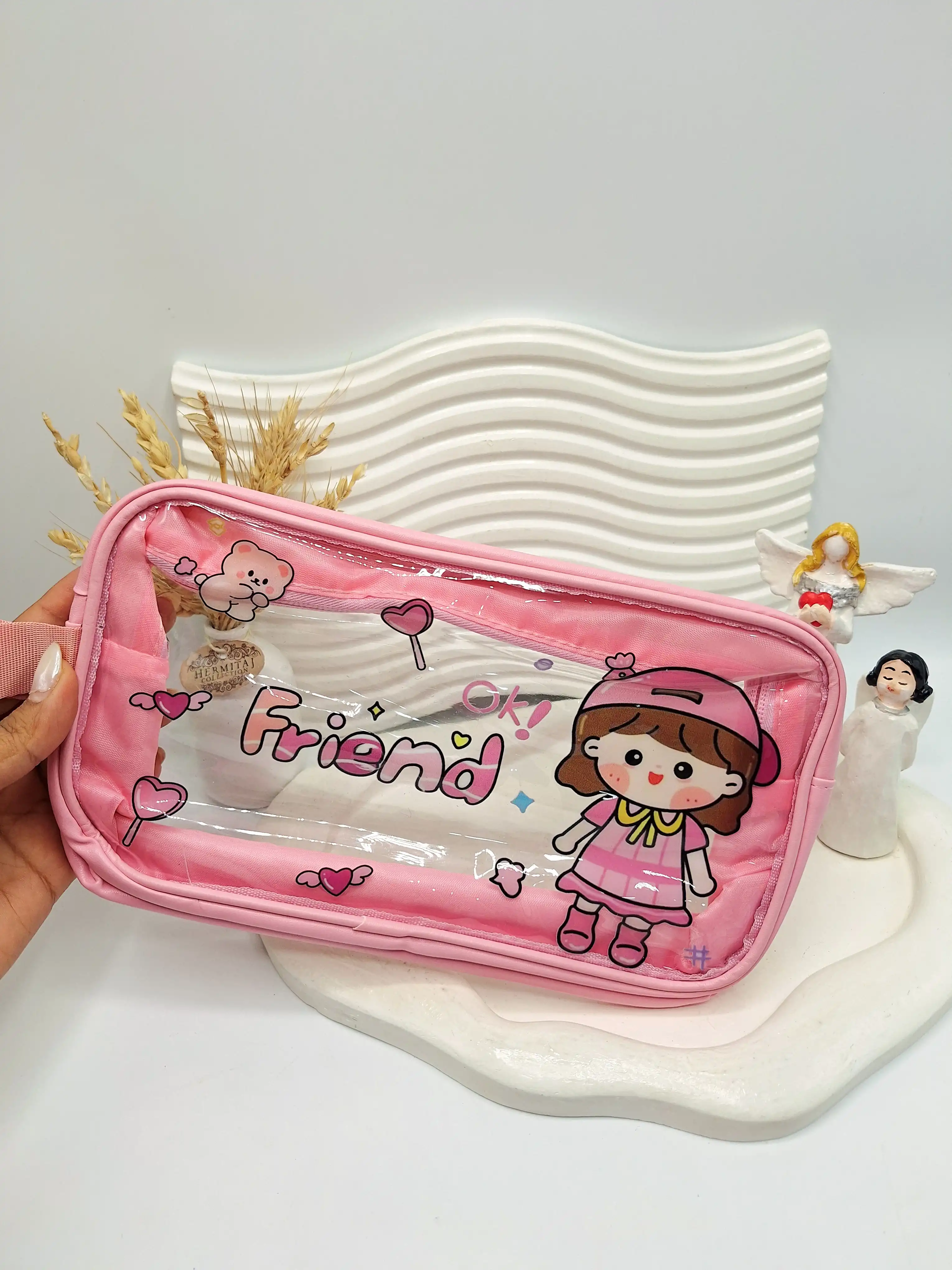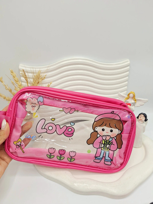 یک کیف آرایشی فانتزی و شاداب برای کودکان و نوجوانان است که با طراحی جذاب و رنگهای دخترانه، تجربهای دلنشین و سرگرمکننده برای نگهداری لوازم آرایش یا وسایل کوچک فراهم میکند 🌸💄🎀.