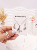 ست گوشواره و گردنبند طرح پروانه مخرج کاری نقره ای استیل