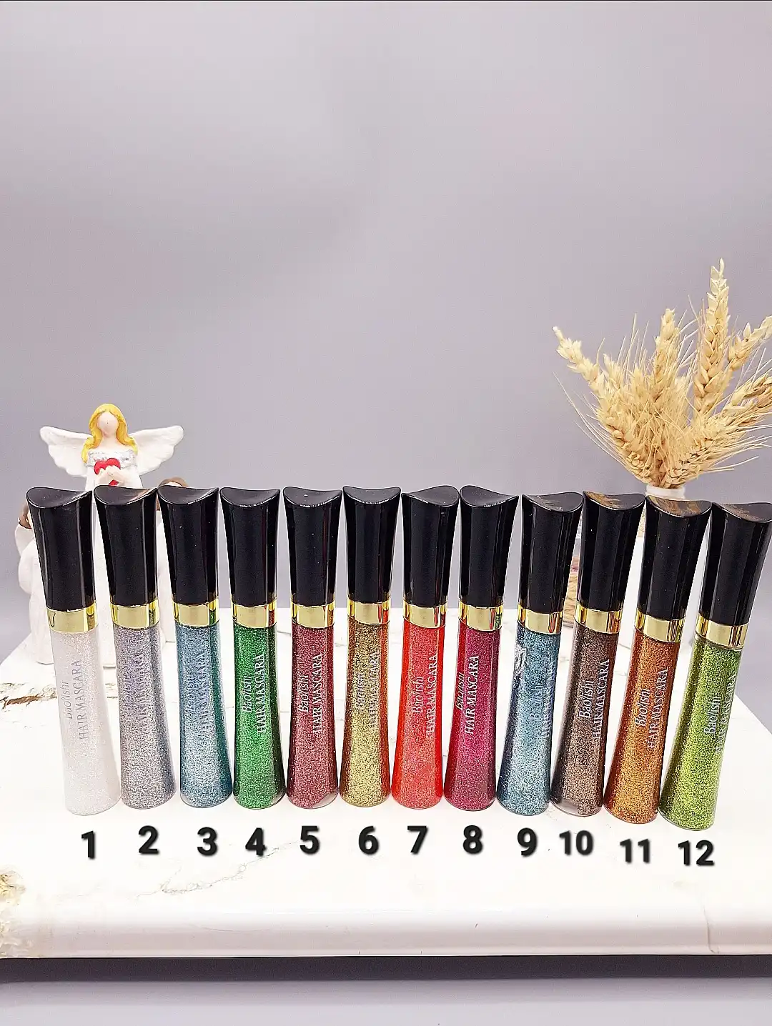 ریمل گلیتری باکیفیت 12رنگ متنوع و جذاب داره بعد از خشك شدن به لباس و دست رنگ نميده فقط با شستشو با آب پاك ميشه کیفیت عالی ضداب پیگمنت بالا