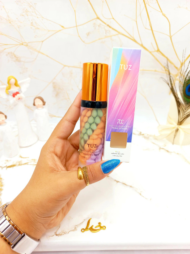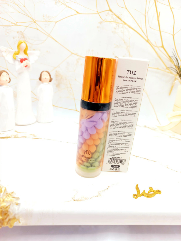 سه رنگ داخل خود دارد که هر کدام ویژگی های منحصر به فردی بر پوست شما میگذارد. رنگ سبز: قرمزی و التهاب جوش رو از بین میبرد. رنگ بنفش: رنگ یکدستی به پوست میده زردی از بین میبرد. رنگ نارنجی: هم تیرگی و کبودی ها رو کاور میکند. پرایمر رنگی tuz با داشتن هر ۳ رنگ، یک محصول تمام و کمال است. پرایمر آرایش را بی نقص میسازد و پوست را مخملی میکند. روش استفاده از پرایمر آرایشی : پس از تمیز کردن ، مقدار مناسبی از این پرایمر را بردارید و آن را به طور یکنواخت روی کل صورت بمالید و کاملاً در امتداد بافت پوست بمالید.