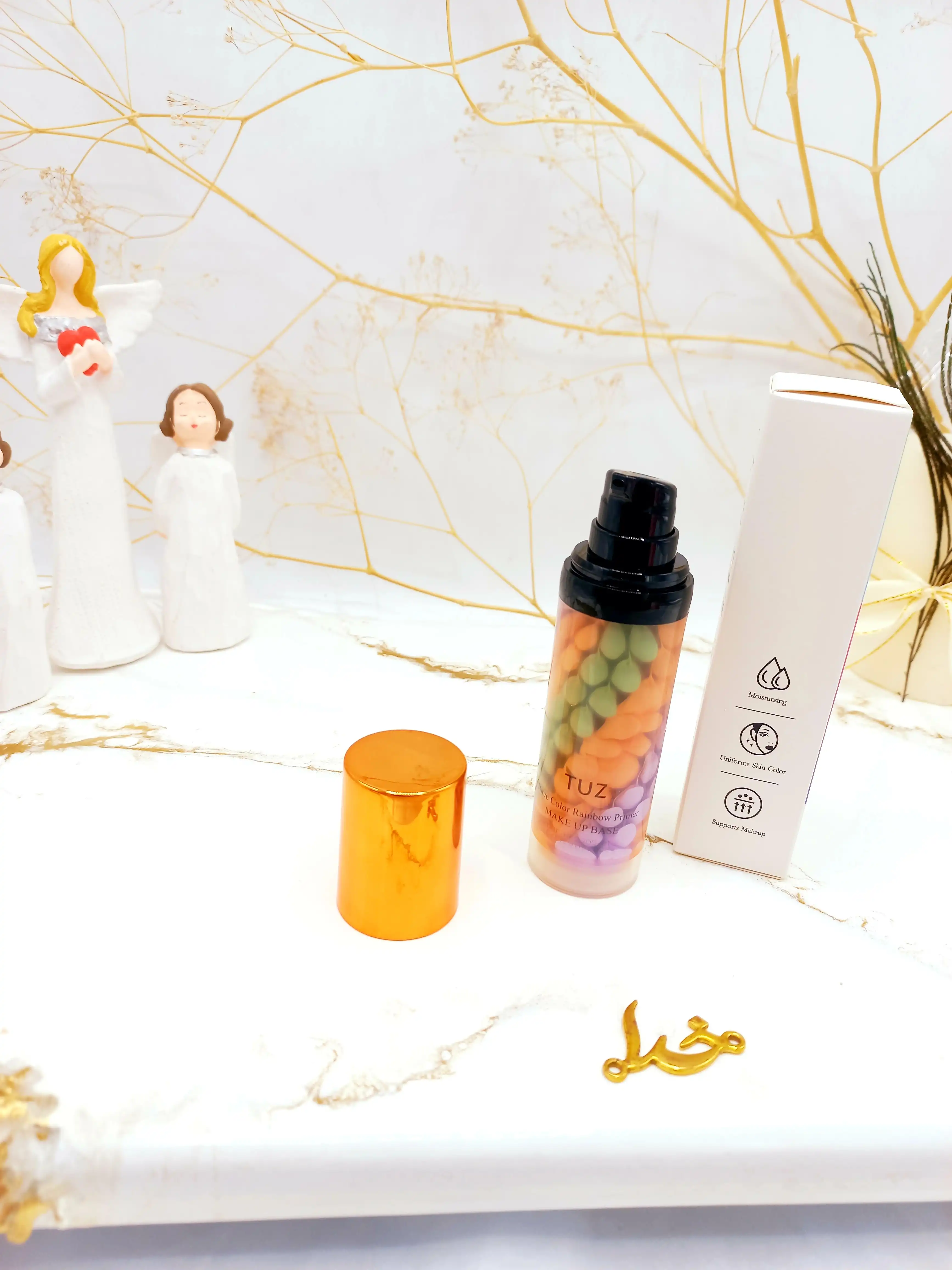 سه رنگ داخل خود دارد که هر کدام ویژگی های منحصر به فردی بر پوست شما میگذارد. رنگ سبز: قرمزی و التهاب جوش رو از بین میبرد. رنگ بنفش: رنگ یکدستی به پوست میده زردی از بین میبرد. رنگ نارنجی: هم تیرگی و کبودی ها رو کاور میکند. پرایمر رنگی tuz با داشتن هر ۳ رنگ، یک محصول تمام و کمال است. پرایمر آرایش را بی نقص میسازد و پوست را مخملی میکند. روش استفاده از پرایمر آرایشی : پس از تمیز کردن ، مقدار مناسبی از این پرایمر را بردارید و آن را به طور یکنواخت روی کل صورت بمالید و کاملاً در امتداد بافت پوست بمالید.
