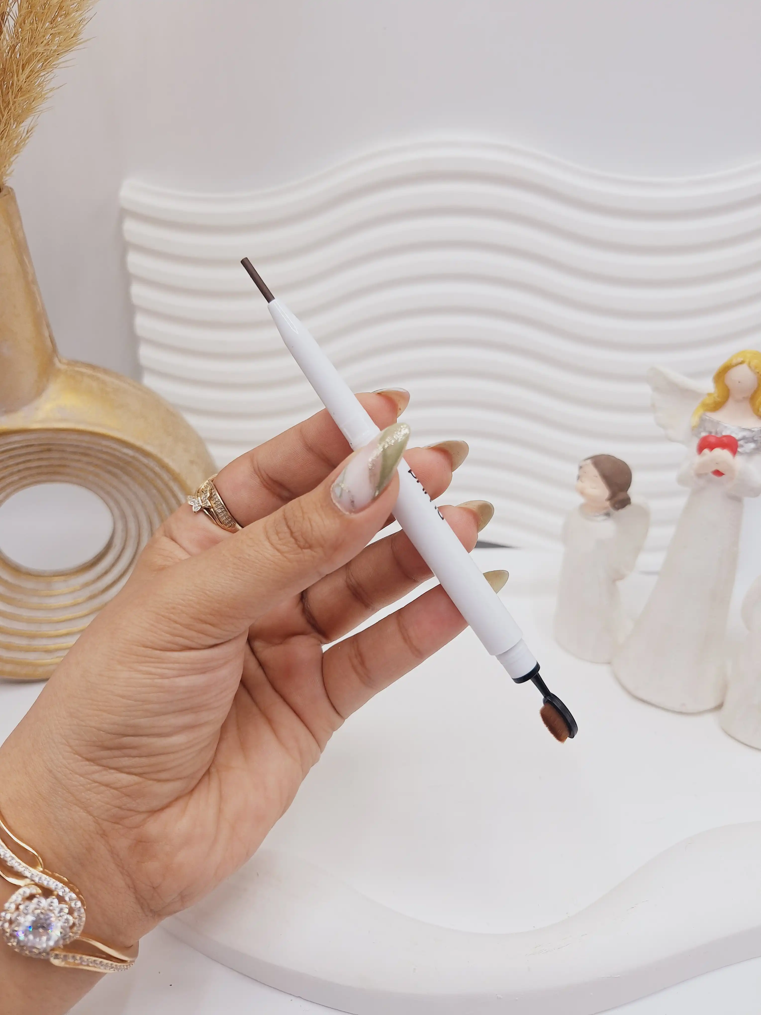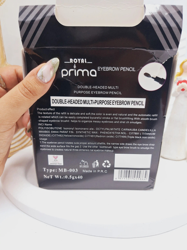 دیفاینر ابرو دو سر رویال پریما دیفاینر ابرو (Eyebrow Definer) نوعی مداد یا ماژیک طراحی ابرو است که برای پر کردن، فرم دادن و تعریف بهتر ابروها استفاده میشود. این نوع محصول دارای دو سر است: 1. سر اول – مداد دیفاینر: • به شکل مداد پیچی میباشد. • نوک آن نازک، تخت و زاویهدار میباشد تا بهراحتی بتوانید خطوطی طبیعی و مشابه تار مو بکشید. • دارای فرمول مقاوم در برابر آب (واترپروف) هستند که دوام بیشتری دارند. 2. سر دوم – برس ابرو (اسپولی یا براش): • برای محو کردن خطوط مداد و ایجاد ظاهری طبیعیتر استفاده میشود. • کمک میکند تا مواد بهصورت یکنواخت در بین موهای ابرو پخش شوند. • به مرتب کردن و حالت دادن به ابروها قبل و بعد از استفاده از مداد کمک میکند. مزایای استفاده از دیفاینر ابرو دو سر ✅ کاربرد راحت و سریع ✅ امکان کشیدن خطوط نازک شبیه به تار مو ✅ داشتن ظاهری طبیعیتر نسبت به مدادهای معمولی ✅ برس برای محو کردن خطوط و مرتب کردن ابرو ✅ مناسب برای پر کردن قسمتهای خالی ابرو نحوه استفاده صحیح از دیفاینر ابرو دو سر 1. ابتدا با برس (اسپولی) ابروها را به سمت بالا شانه کنید تا شکل طبیعی آن مشخص شود. 2. با قسمت مدادی یا ماژیکی، ابتدا قسمتهای کمپشت را با حرکات کوتاه و شبیه به تار مو پر کنید. 3. نواحی پایانی ابرو را کمی پررنگتر کنید تا فرم ابرو مشخص شود. 4. مجدداً با برس ابرو را شانه کنید تا رنگها طبیعیتر به نظر برسند. 5. در صورت نیاز از ژل یا فیکساتور ابرو برای تثبیت استفاده کنید. این محصول برای افرادی که به دنبال ابروهای خوشفرم و طبیعی هستند، گزینهای عالی محسوب میشود. 🌸شامل ۴سری رنگبندی طبیعی