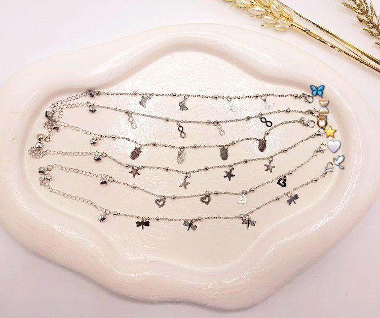 دیدن محصولات مرتبط✨ جنس: استیل ضد زنگ و ضد حساسیت 🎨 رنگ: نقرهای براق 🦉 طرح: جغد و پروانه زنگولهدار ظریف 📏 طول پابند: حدود 23 سانتیمتر + زنجیر 💎 مناسب برای: استفاده روزمره و مهمانی 🌊 مقاوم در برابر آب و تغییر رنگ