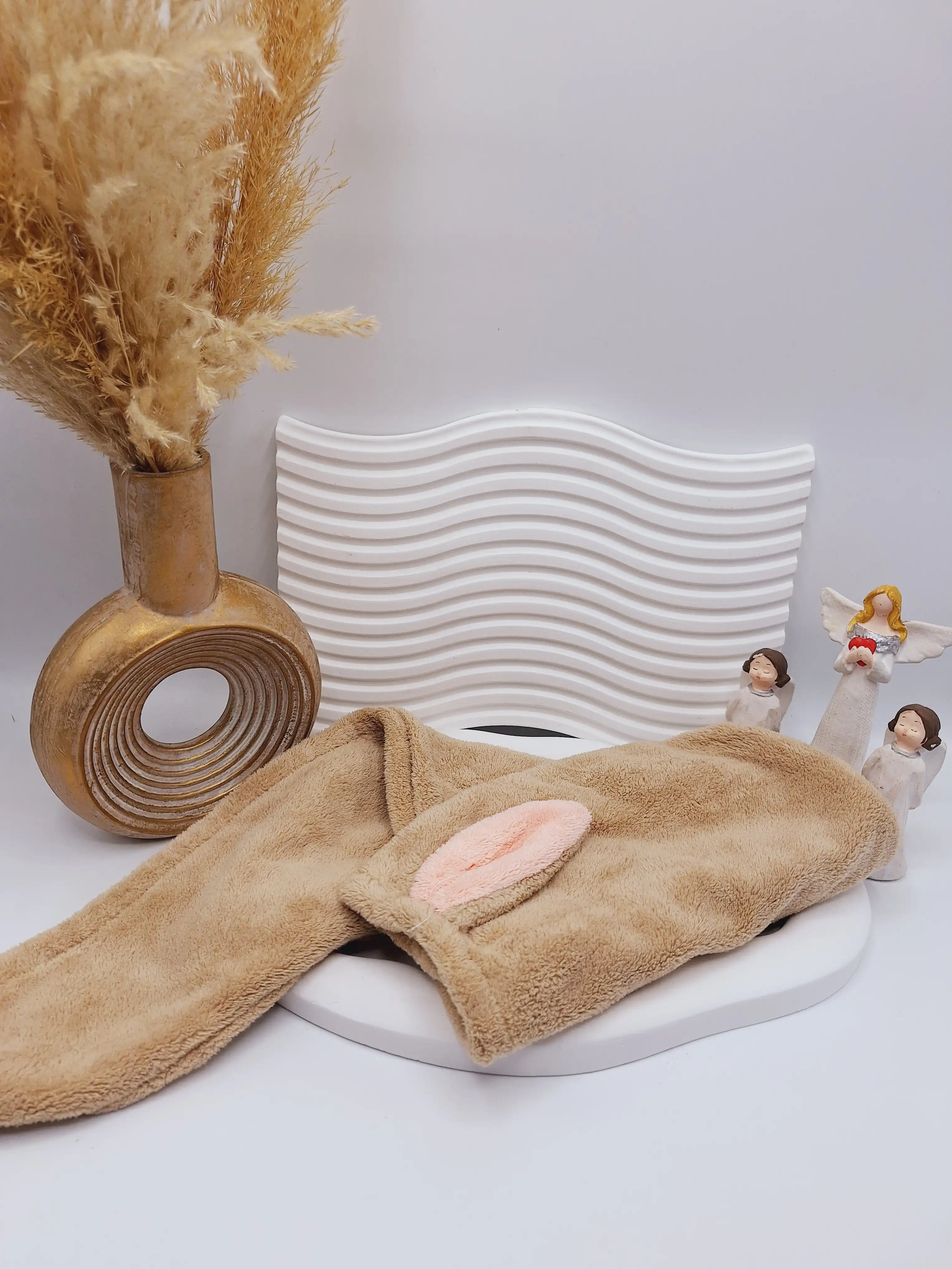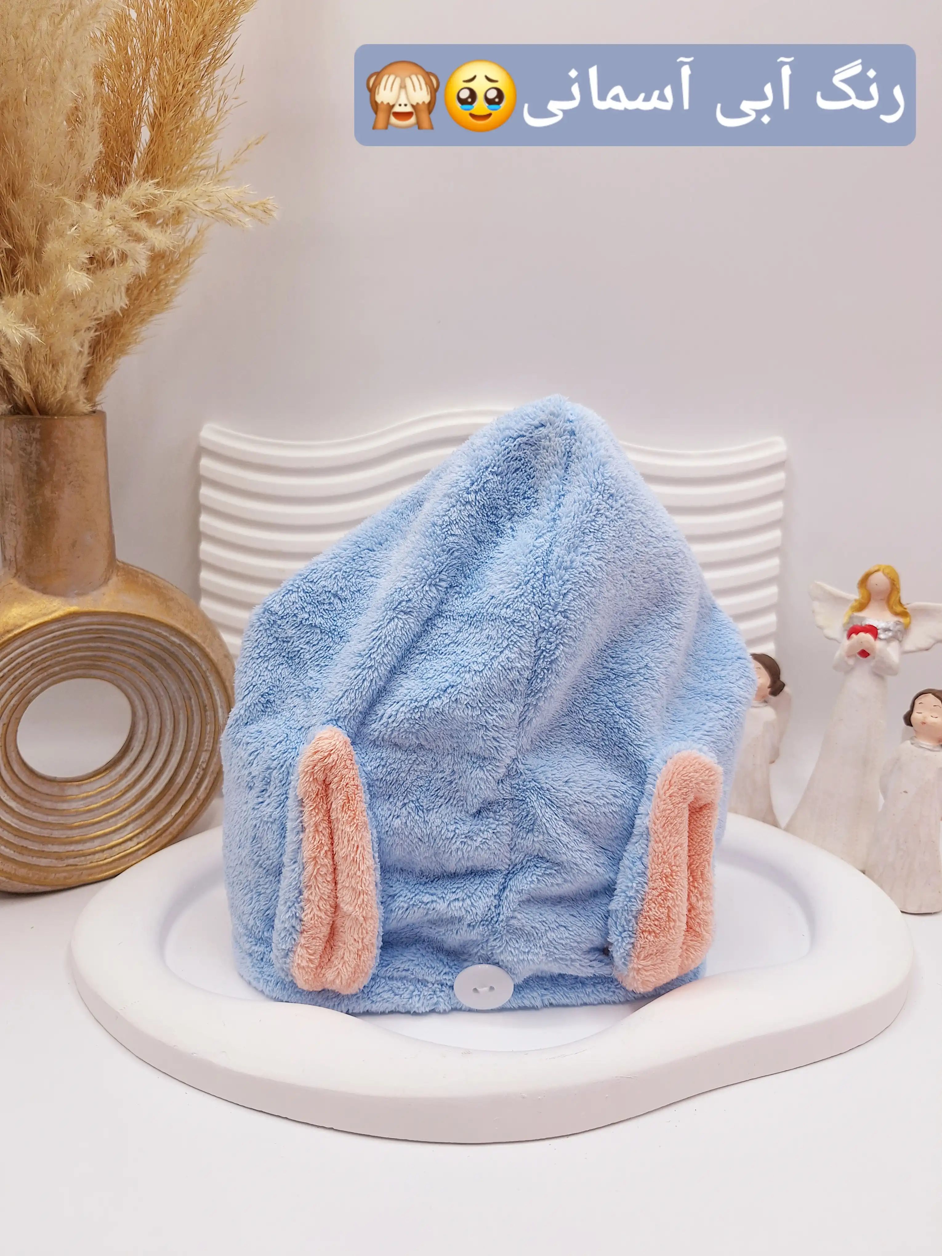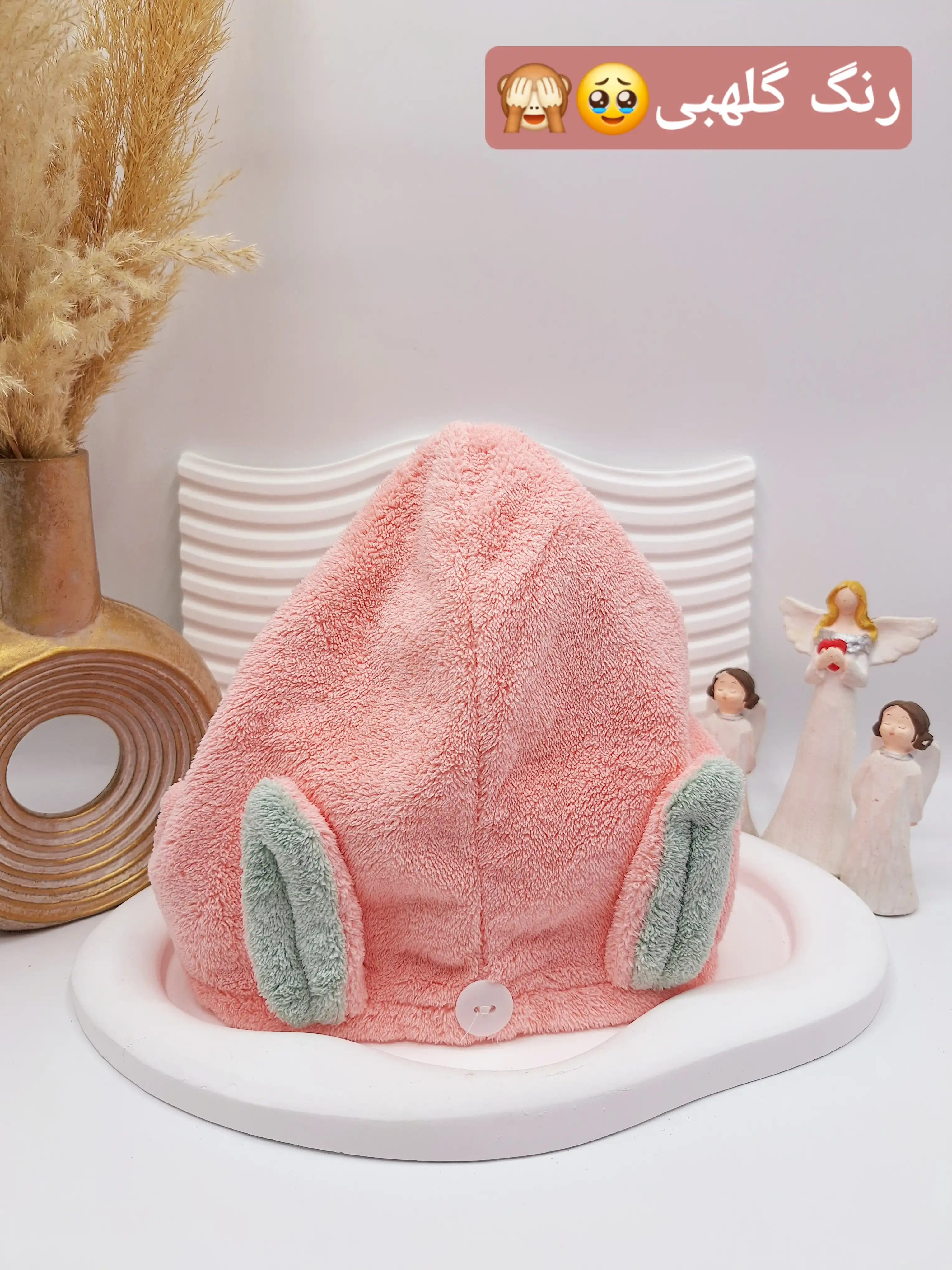 یه حوله جذاب و کاربردی که بعد از حمام🎀✨️🥹 راحت میتونید موهاتونو داخلش بپیچید که خشک بشه🎀✨️🥹 جلوی کار دکمه داره و یه طرح خیلی جذاب🎀✨️🥹 بغل گوشتون میاد کیفیت حولشم عالیه و کاملا نرمه.🎀✨️🥹