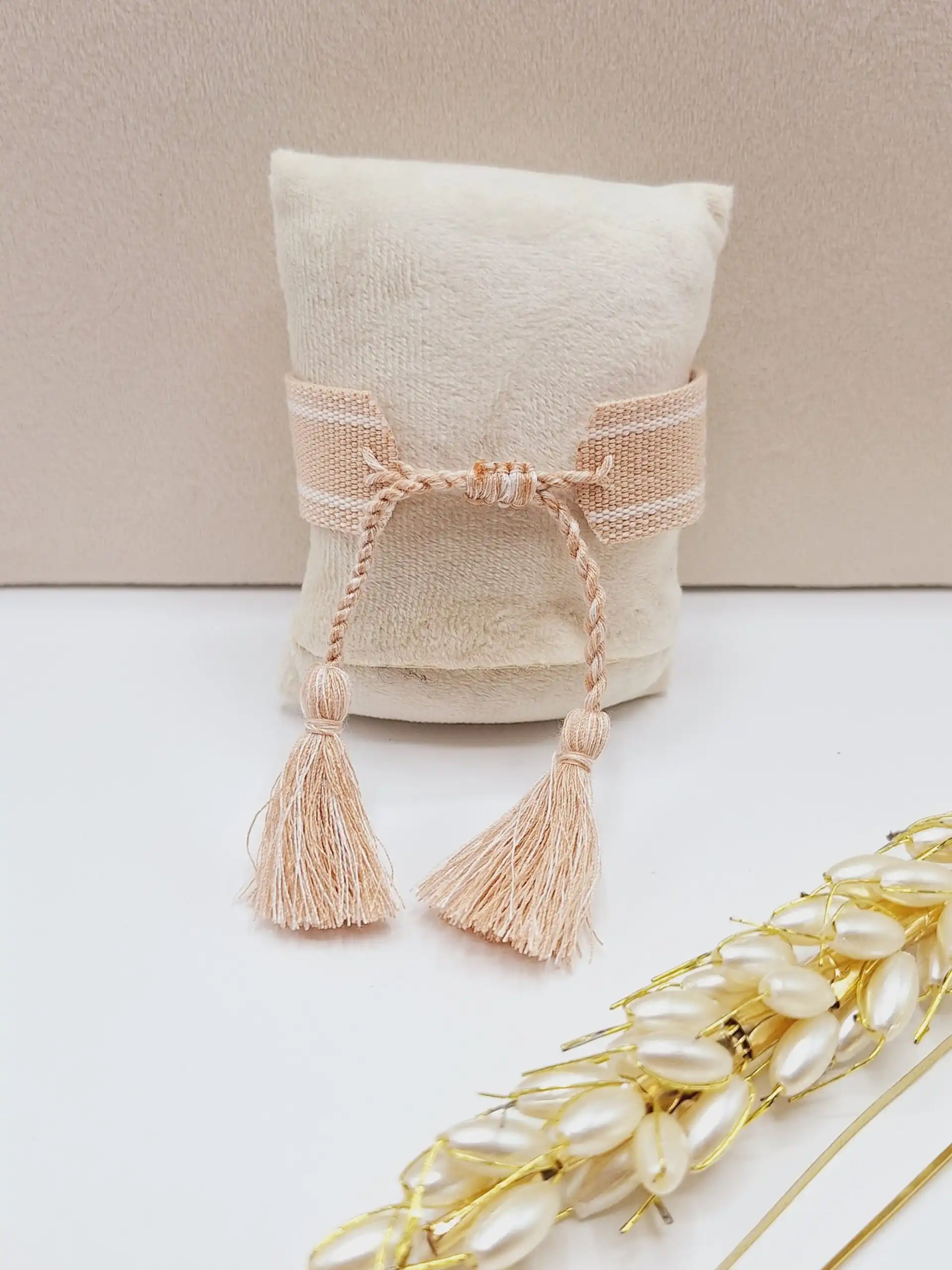 این دستبند پارچهای الهام گرفته شده از ظرافت و سبک کلاسیک برندهای لوکس است و مناسب خانمهایی که عاشق اکسسوریهای دخترونه، مینیمال و شیک هستند 💖✨😍