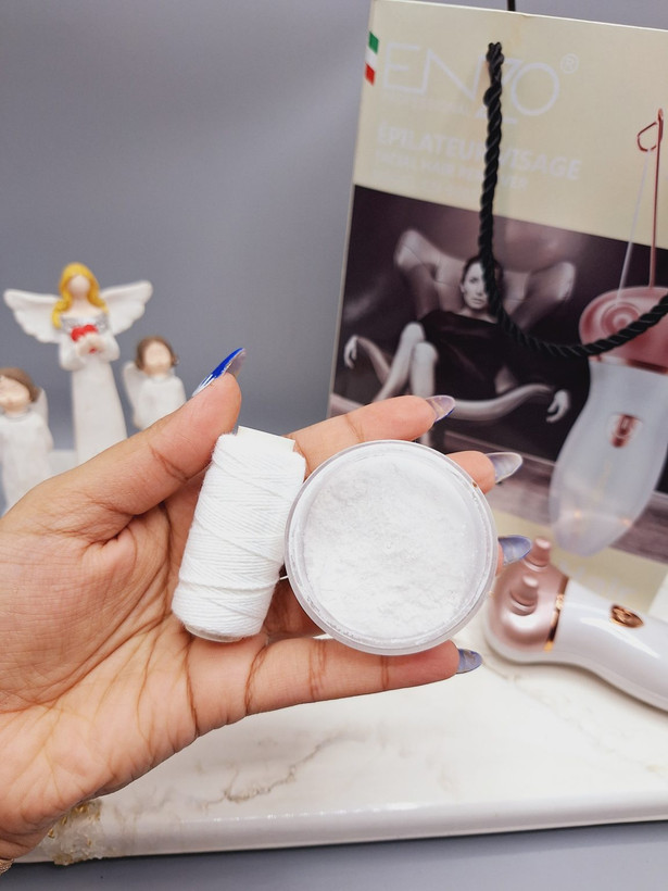 با نخ کار می کند تا موها را با دقت و بدون درد از بین ببرد