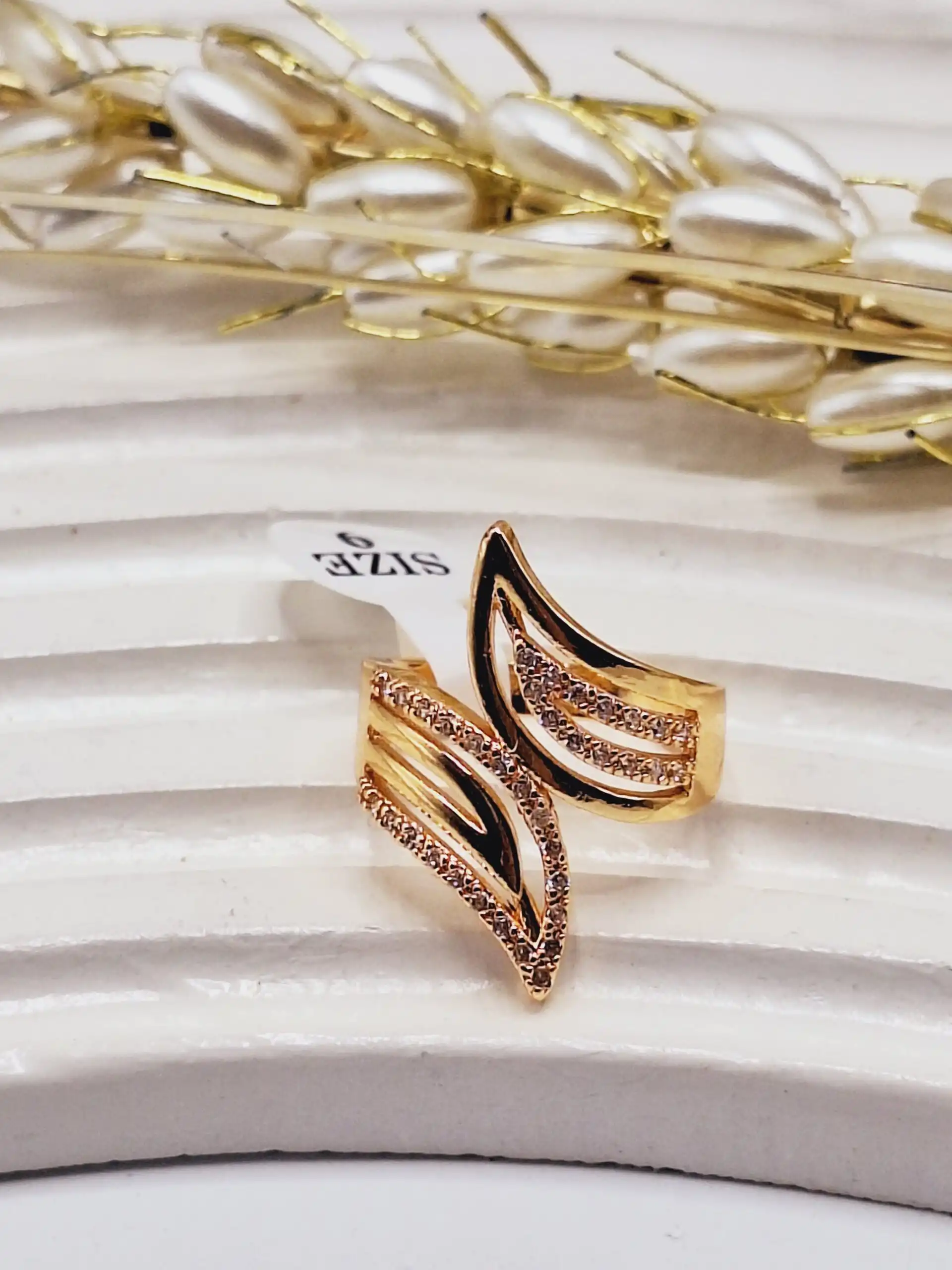 انگشتر طرح برگ طلایی آبکاری برنجی