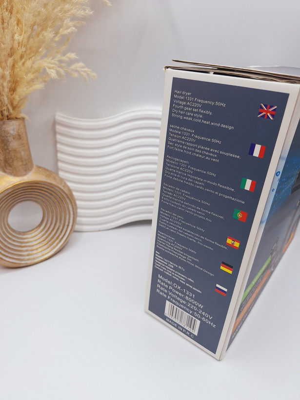 سشوار اکسیژن برند نام آشنا در تولید محصولات با کیفیت برقی است. یکی از جدیدترین محصولات با کیفیت سشوار حرفه ای 8000 وات سشوار اکسیژن مدل OX-1331 است. این محصول با بهره گیری از موتور AC دارای قدرت پرتاب باد بسیار بالایی است و در دسته سشوار های حرفه ای قرار میگیرد. روی دسته این محصول 3 دکمه تعبیه شده که آنها تنظیم حرارت سشوار و سرعت دمیدن باد را به عهده دارند به این صورت که یک دکمه جهت ایجاد باد سرد به طور لحظه ای است. یک دکمه 3 حالت بدون حرارت، حرارت کم و حرارت زیاد را انجام میدهد. یک دکمه هم تنظیم 3 حالت باد خاموش، سرعت کم و سرعت زیاد را به عهده دارد. درون بسته بندی 2 عدد سری متمرکز کننده وجود دارد.