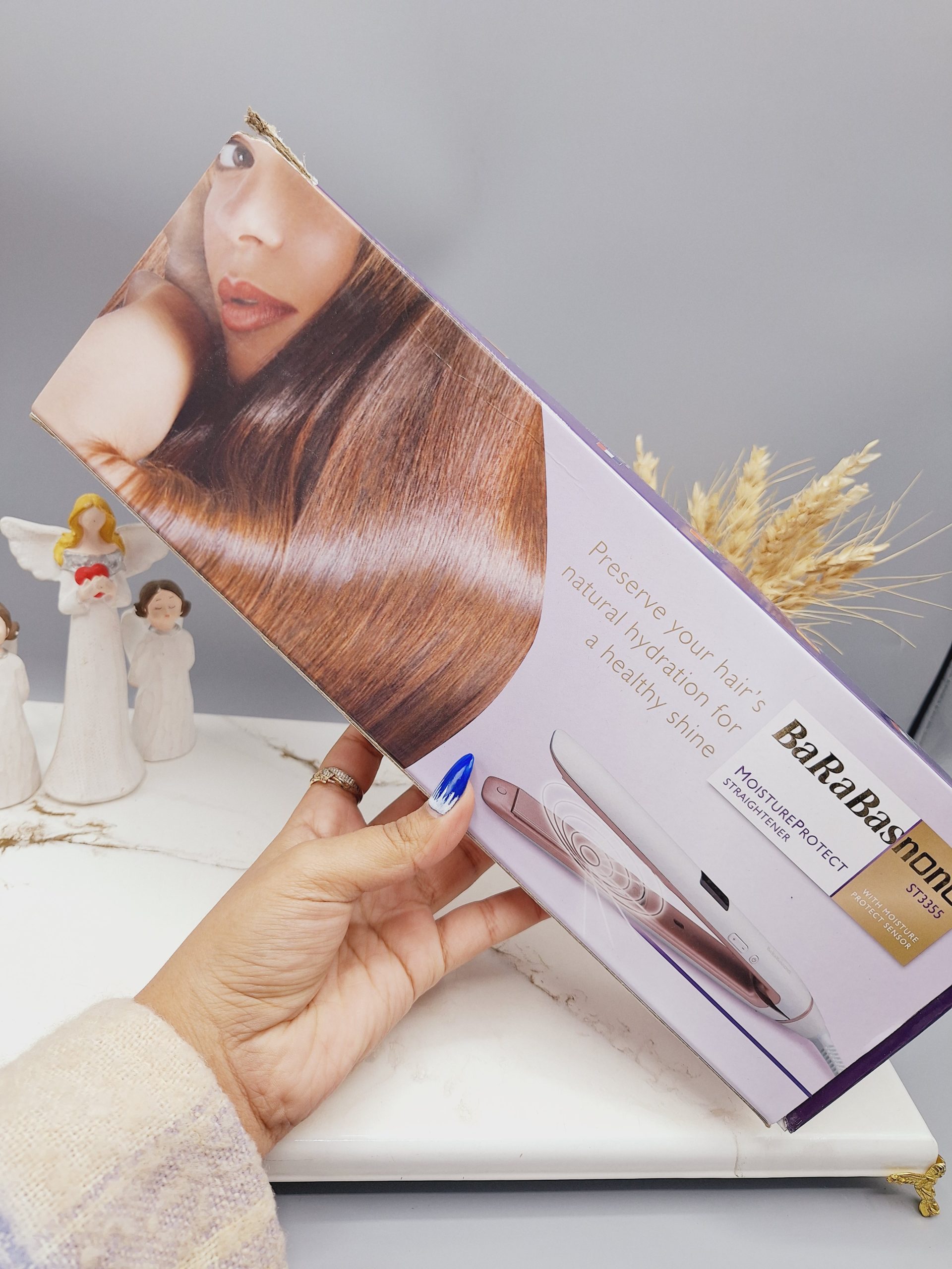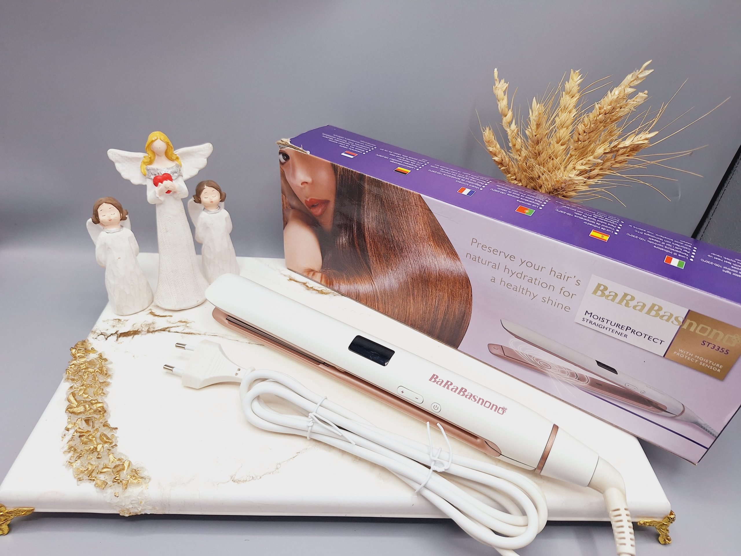 اتومو باراباس نانو مدل 3355، محصولی با طراحی نوین که در عین زیبایی و کیفیت ، دارای تکنولوژی پیشرفته است . دمای این اتو مو قابل تنظیم بین 100 تا 230 درجه سانتی گراد می باشد که توسط نمایشگر تعبیه شده بر روی دستگاه قابل مشاهده است . این اتوی مو دارای صفحه تمام سرامیک می باشد . صفحههای سرامیکی حرارت را به طور یکنواخت توزیع کرده و تا حدودی از سوختگی موها جلوگیری میکند. با توجه به ظرفیت گرمایی بالای سرامیک ، صفحه سرامیکی گرمای خود را برای مدت طولانی حفظ میکند. اتصال کابل برق به دستگاه ، قابلیت چرخش 360 درجه دارد و استفاده از آن را ساده تر کرده است.