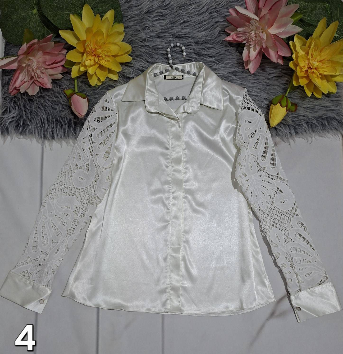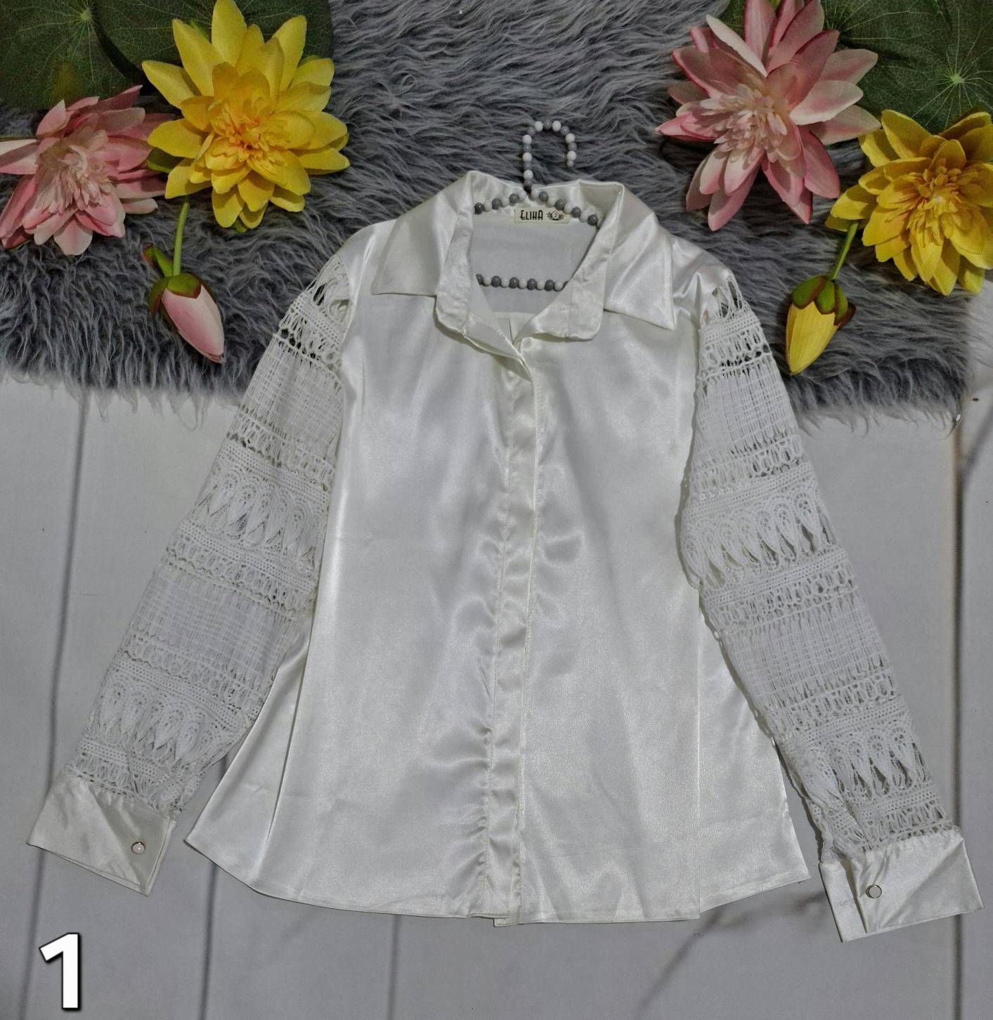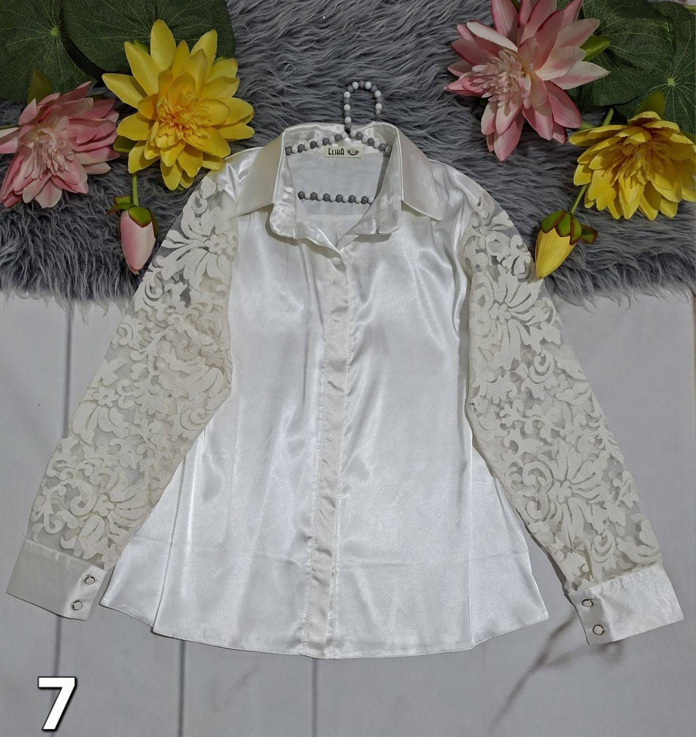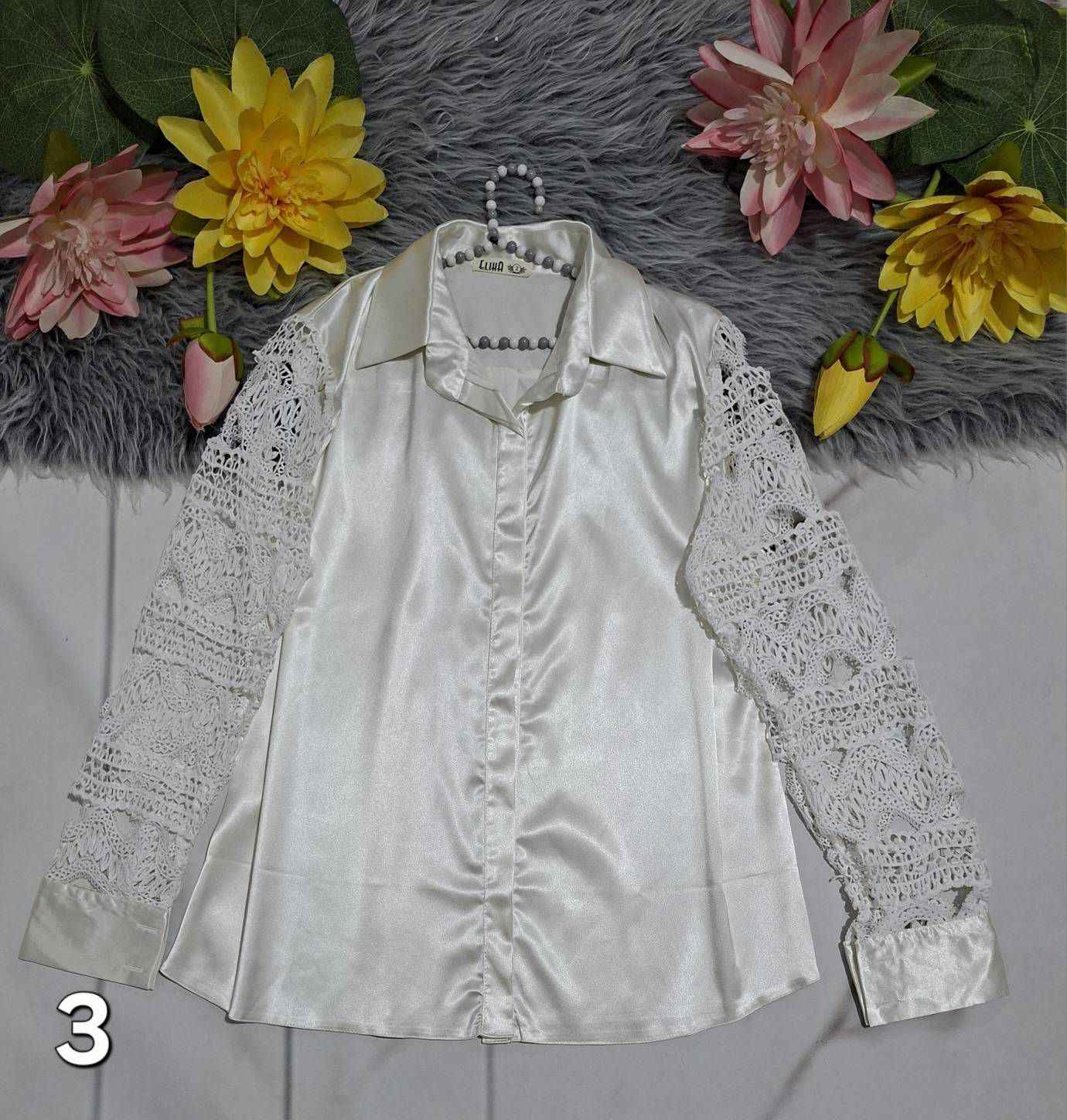 🧵جنس : ساتن فرانسه+قلاب بافی وگیپور