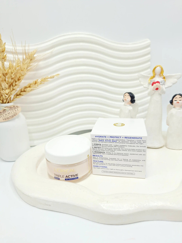 🌿 کرم شب لورآل تریپل اکتیو نایت محصولی حرفهای برای تغذیه، ترمیم و احیای پوست در طول شب است.