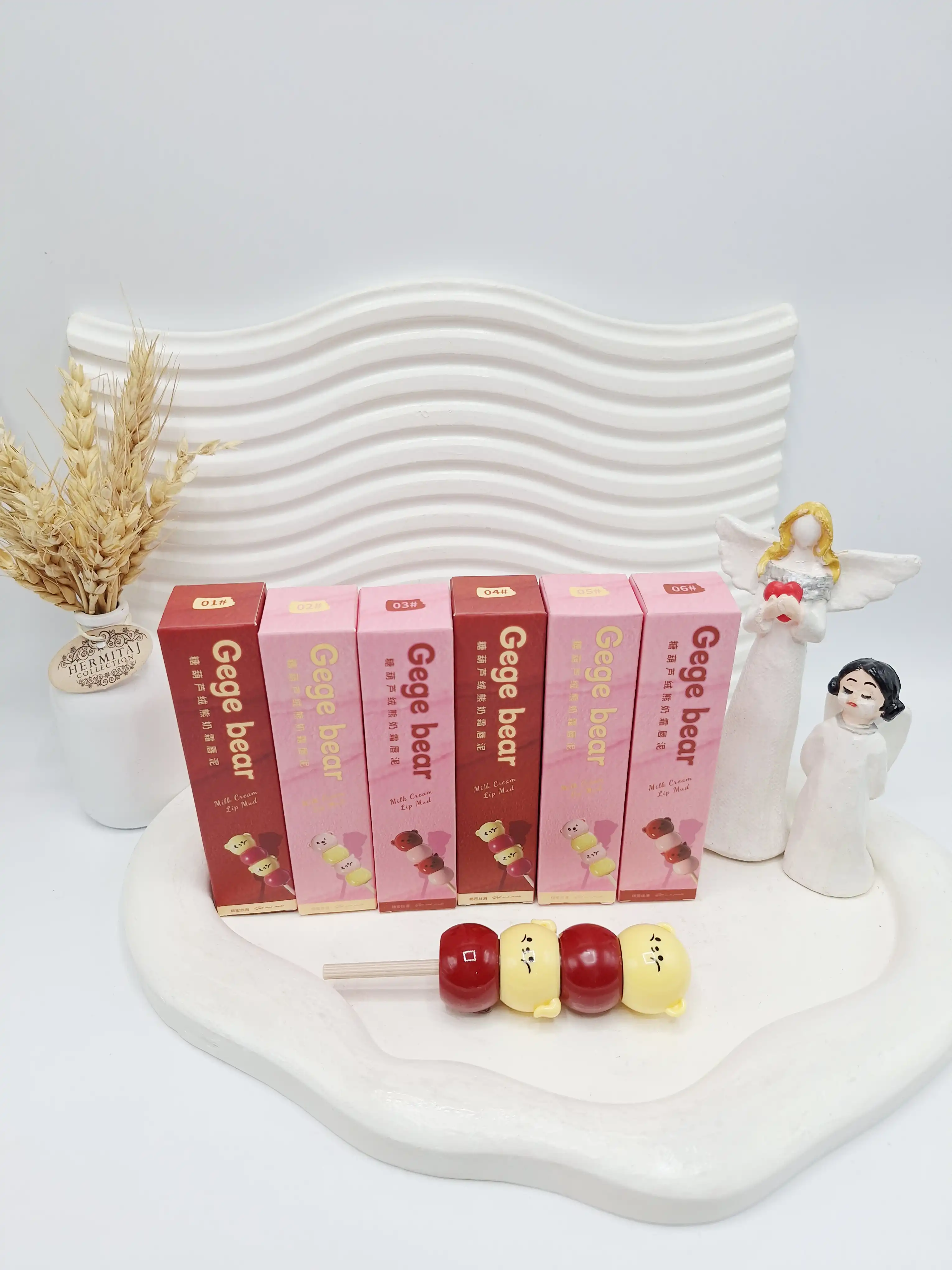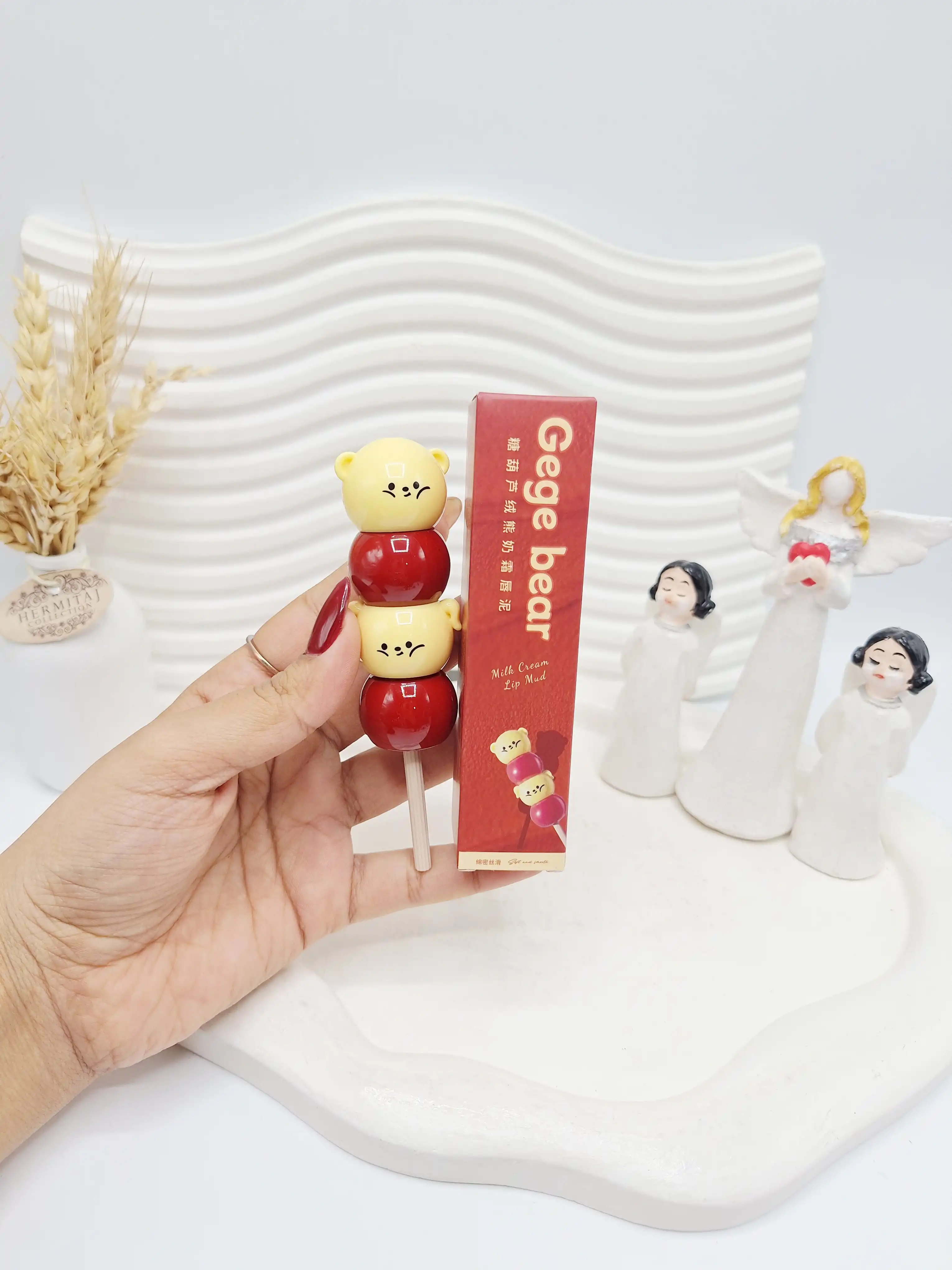 ✨ رژلب مخملی کرهای طرح آبنبات چوبی برند