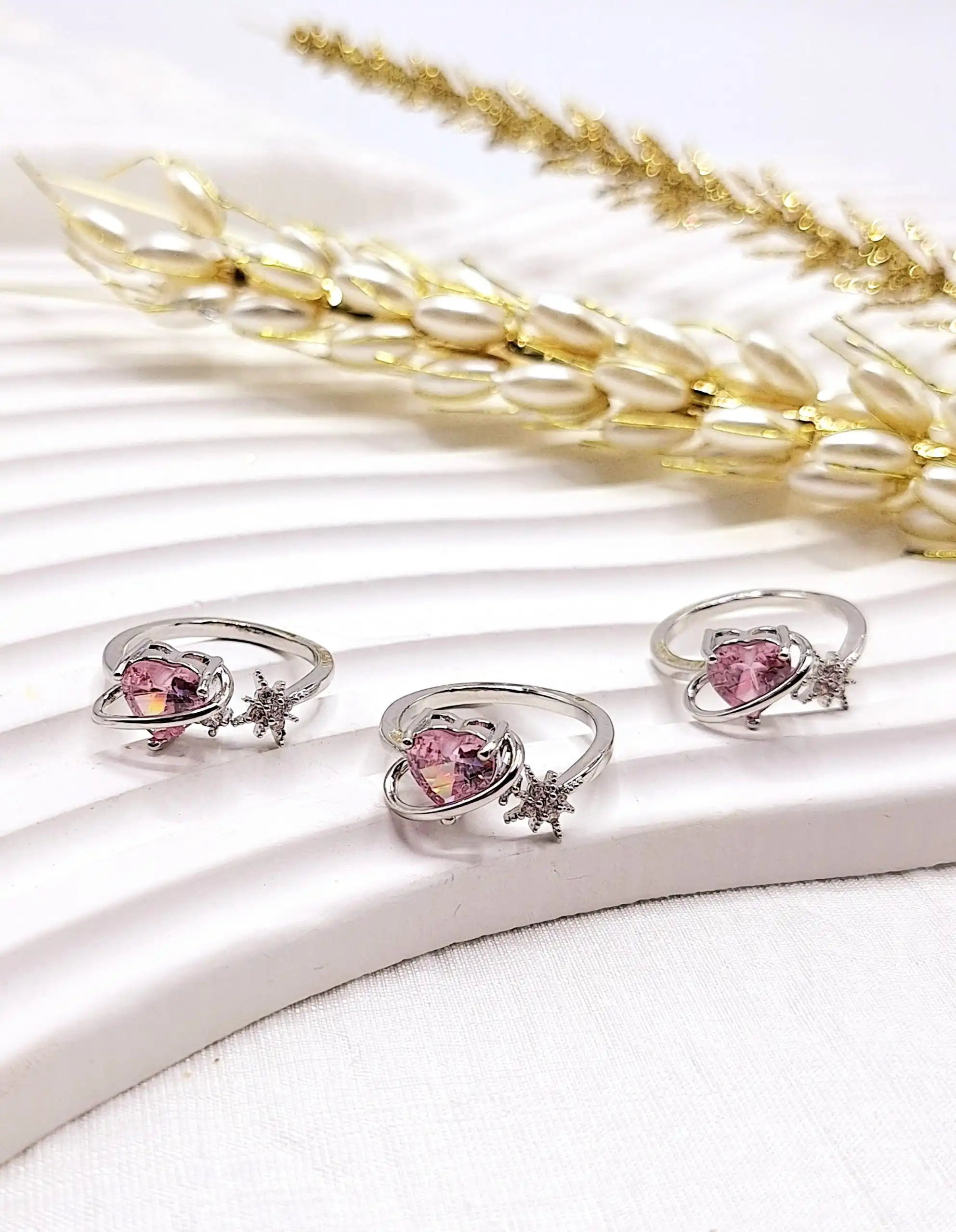 انگشتر پینترستی طرح قلب صورتی و سیارات